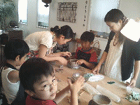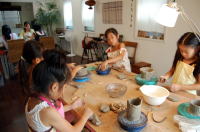 2009.6 親子体験教室。 3年生3人と、年長さんと、そのお母さん達のグループ体験です。 今回は‘夏休みの工作”用なので、お母さんと離れて 自分達だけで頑張って作っていました。 お母さん達も奥のテーブルで素敵な作品を作られました。 私も児童館時代を思い出し楽しい時間が過ごせました。 毎年夏休みに入ると「夏休みの工作に」とお問い合わせをいただきますが 陶芸作品は2度焼くので‘夏休みの工作”は遅くとも7月中がオススメです。 |