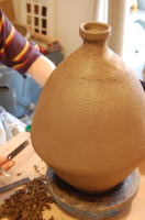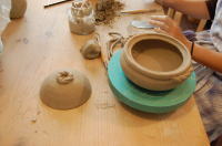 2009.12 土鍋づくり。 最近の教室の流行は土鍋土を使った土鍋づくりです。 陶芸の場合、本当は季節を先取りして作らなければ 使いたいときに使えないのですが12月を迎え土鍋作り真っ最中です。 同じ土鍋を作っているのハズですが、洋風だったり和風だったり 浅かったり深かったりとそれぞれの理想の土鍋を作っています。 出来上がった土鍋を見ては「美味しそう」と思わず言っています。。。 |