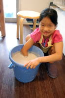 2009.7 3回コースの3回目。 3回コースの3回目は釉掛けです。 お母さんと一緒に夏休みに通っていた小学校3年生です。 ドロドロの釉薬を混ぜていますが何だか楽しそう! 陶芸のイメージにはあまりないであろう釉薬掛けですが 今まで作ってきた作品の最期の仕上げなので結構大切なのです。 |