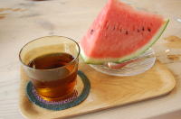 2009.8 夏のおやつ2。 長野の安曇野に住んでいる友人からの贈り物です。 4等分にしても冷蔵庫に入りきらないくらいの大きさなのに ちゃんと実が詰まっていて、なんて美味しいのでしょう(^−^) 本当に感謝感謝です。 生徒さんにもお裾分けして美味しく頂きました。 |