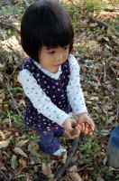 2009.10 どんぐり拾い。 娘はどんぐりを「拾わなくてはならない物」だと思っているのか どんぐりを見つけるとせっせと集めています。 最近読んだ絵本で「どんぐりの割れ目から芽が出る話」があり 割れているどんぐりを見つけては「芽が出てるよ」と言って 土に埋めています。 ちょっと中途半端な知識ですが、どんぐりがちょっとでも 家からなくなると嬉しい母なのでした。。。 |