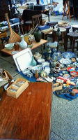 2011.9 久々の早朝の骨董市は、掘り出し物が沢山ありました。 今回は、小瓶やゼンマイ等、小物目当てでしたが 「アメリカの天井に貼ってあった」と言わらたトタン?の板は嬉しい収穫でした。 この週末は、地方の友達も遊びに来ていたので この後、三崎までランチ☆ 三崎の器屋さんにも似たような板が売られていました。 私が知らなかっただけで最近流行っているのでしょうか? その後も鎌倉の古道具屋さん等を回り ヘトヘトになりながらも楽しい週末でした。 |