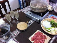 2011.12 初・きりたんぽ鍋♪ 土曜日の教室終わりに、生徒さんにお呼ばれ!プチ忘年会をしました。 主催してくれた生徒さんは今年ワインエキスパートも取得した方なので 家にワイン庫?が二つ置いてあり食べ始める前からテンション上がりました。。 きりたんぽ鍋がこんなに美味しいとは思いませんでした~!(←失礼^^;) すっかりキリタンポの魅力にハマリ、タンポ串?と 比内地鶏のスープの素もいただいて大満足で帰宅 ウチの家でもキリタンポ鍋が流行りそうです。 本当に有難うございました!!! |
