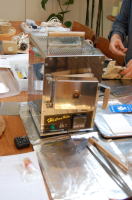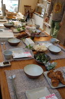 2011.3 春のお食事会。 生徒さん達と「自作の器で」持ち寄りパーティをしました。 お料理上手な方が多いのでとっても勉強になりました。 スパイス料理のデリバリをされている生徒さんの料理教室の話や シルバークレイのお仕事をされている生徒さんの 作品を見せていただいたりと楽しく過ごしました。 |