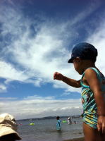 2011.8 海遊び。 葉山の海は、波も人も落ち着いていて小さな子ども連れには嬉しく 波や人が少ない分、本気でビーチバレーが出来ました。 元々「海はご飯食べに行くところ」と思う私たち夫婦ですが 男の子はタクマシク!と海に連れて行ってはみましたが・・・ 「オカアカンダッコ~」と情けない声を出していました。 う~ん・・・この性格は時間が解決してくれるのでしょうか? |