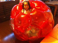 2011.9 スポーツの秋。 だんだん秋めいて来ましたが家の中で汗だくな子ども。。。 こちらは中に入って転がって遊ぶボールです。 本当は公園で遊ぼうかと気軽な気分で買ってきましたが 膨らますのに大人3人で1時間半掛かりました。。。 大きすぎて外にも出せず、テレビを見にもジャマです。。 ちょっと考えモノですが、ずっと遊んでいるので 台風や秋雨の中、家の中で体力を消耗してくれるのは有難いです。 |